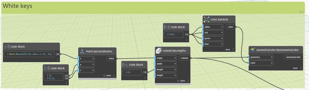 The piano keys were created using Cuboids in Dynamo.