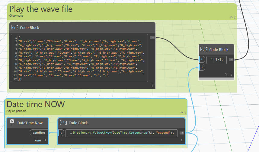 Dynamo plays Auld Lang Syne, the traditional Scottish New Year’s song, by iterating through an ordered list of sound files.
