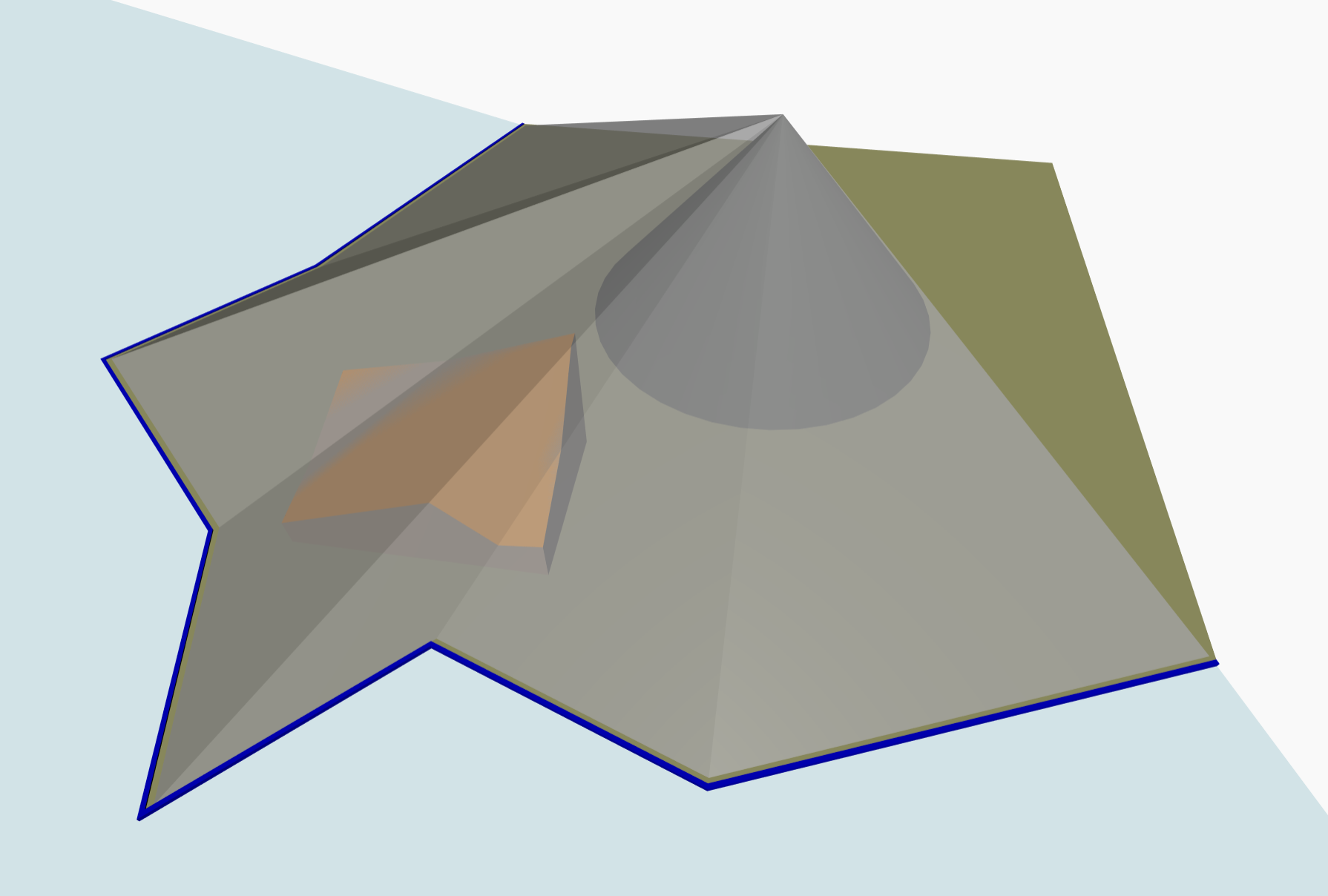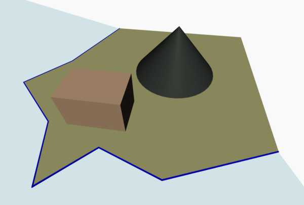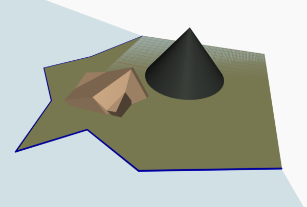Let us begin by preparing a conceptual scene that consists of a peak (a cone), a jagged coast-line (a poly-curve) and an initial building mass (a solid) that we will alter.