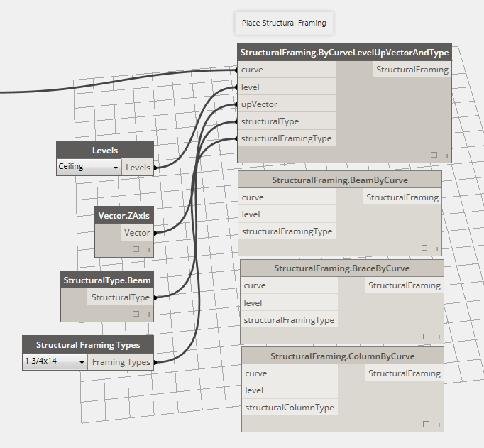 We have made the creation of structural framing elements much easier. Placing structural framing in 0.7.3 required users grappling with 5 input types, at least 2 of which were non-sensical to non-programmers and one that didn’t work (UpVector, at least in an obvious way). We are preserving the old node, as there are some edge cases where it still makes sense to use have it available, but we are breaking this functionality out into 3 more specific nodes, creating Beams, Braces, and Columns, with only 3 needed inputs.
