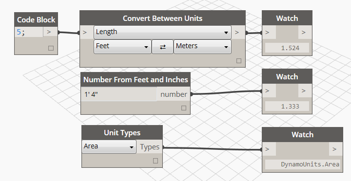 The way Dynamo interacts with units will significantly change in 0.8. We hope these changes will make using units more intuitive, both when interacting with Revit and modeling purely in Dynamo. The basic idea is that there are no more units in Dynamo! The workflow pictured above would have needed an additional 4 nodes to make it work in 0.7.
