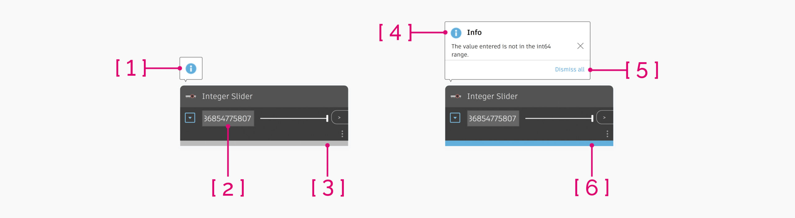 trigger this particular alert, you need to enter a number over the maximal positive or maximal negative value in the int64 integer range - [ 3 ] We missed a bit here… this bar should be blue and will be remedied in Dynamo 2.15! #owningOurOopses
