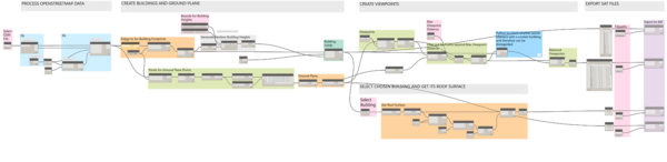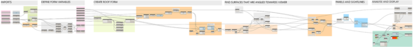 The Dynamo graphs and example files can be found on the Stealthy Roofscapes GitHub account. The prototype developed at the Hackathon was necessarily rough around the edges and there are lots of refinements to be made to improve it as a tool. Contributions are most welcome!
