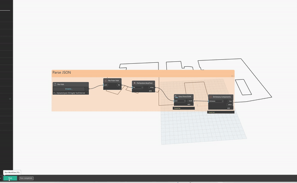 In cases where structural slabs are identical across multiple levels, you can use the same information with a modification to the z coordinate of the point to match the Level’s elevation. To do this, I would open the file in a JSON editor and update the Z coordinates. As a user, I can still read/modify the string just like when I was using Excel to store/update the data. The BIM Manager can then use the Data.ParseJSON node to read the string back to Dynamo in their native data format, such as Point, Curve, Integers, or String.
