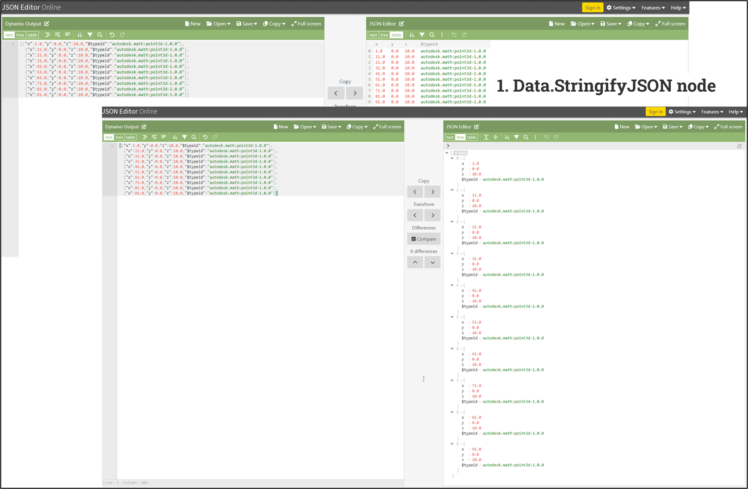 - Data Exchange: It allows you to convert objects (Dynamo Core Geometry, Strings, Integers) into a string format that’s universally recognized, making it easier to transmit data between Dynamo instances and/or another client.