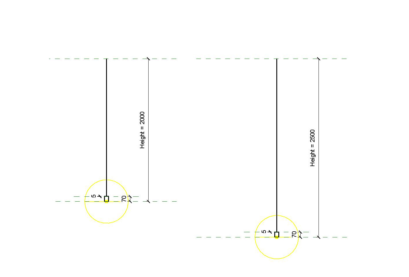 It is also necessary to pay attention to the family of lights, whose most important parameter, length/height, is adjustable downwards so that the dynamo script can change it and keep the upper point of the cable fixed on the prepared suspended ceiling.