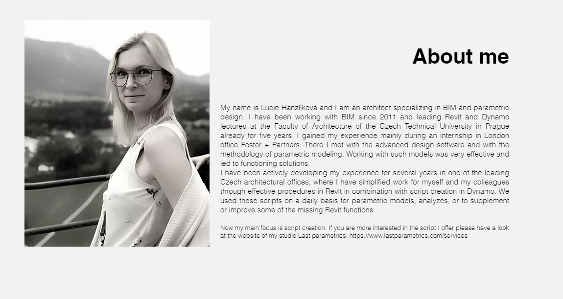 The issue of creating parametric models and creating scripts to make the workflow in Revit more efficient is also the focus in my studio Last parametrics (www.lastparametrics.com).