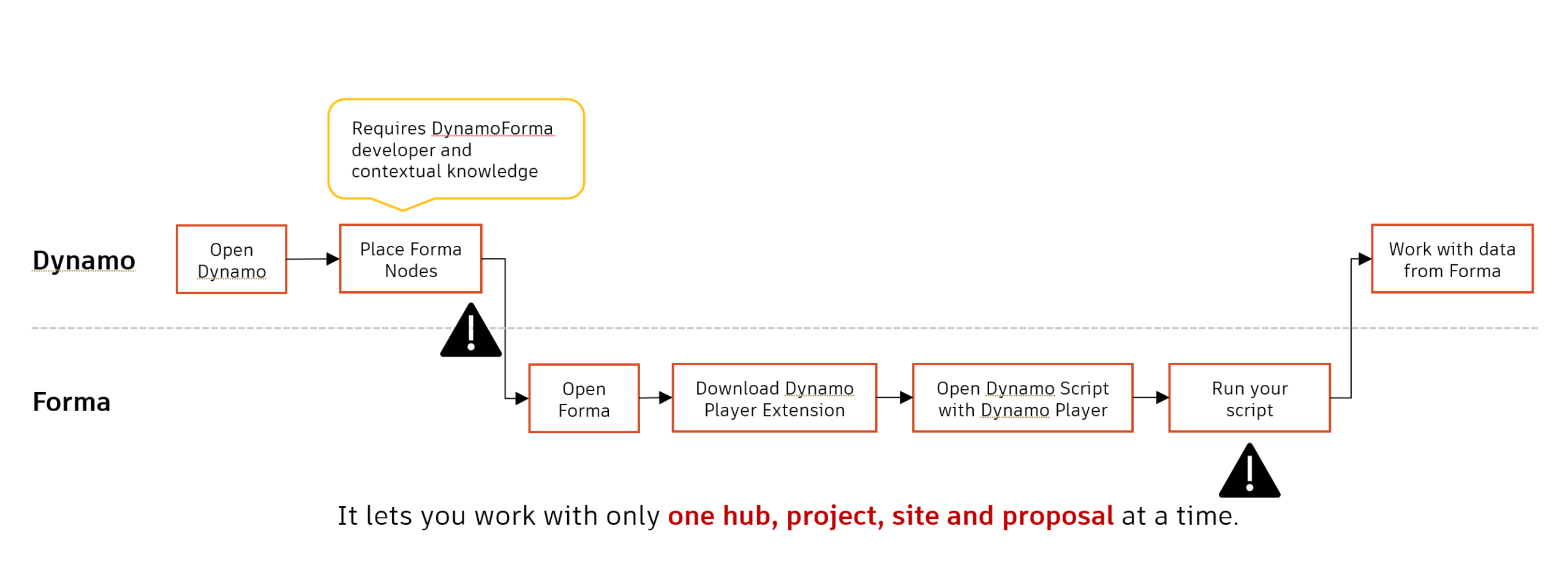 The current workflow for setting up Dynamo-Forma connection